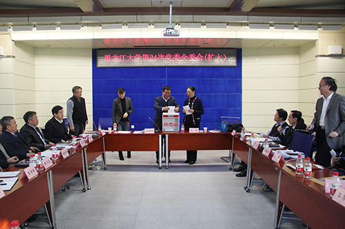 12月28日上午,我校在主楼226会议室召开黑龙江大学党委全委会(扩大)会议,选举我校出席省委高校工委党代会代表。全体校领导、党委委员、纪委委员、二级党组织书记出席会议,会议由我校党委书记刘德权主持。