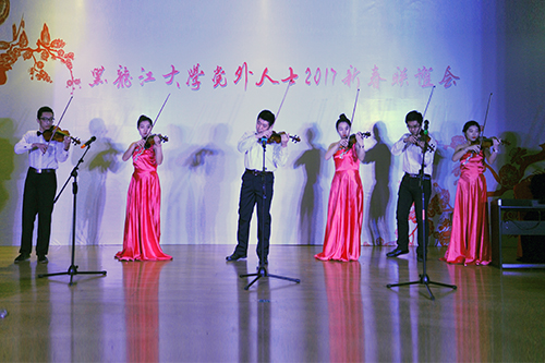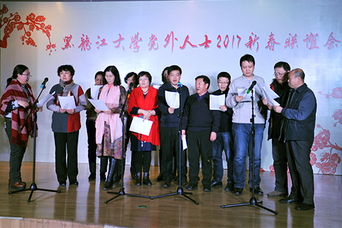 党委书记刘德权代表学校党委向与会党外人士致以诚挚的谢意和新春问候。他表示,2016年是“十三五”开局之年,也是学校加快推进有特色、高水平、现代化建设进程的重要一年。一年来,学校在教育教学改革、学科建设和人才队伍建设等方面取得了显著地成绩,这些成绩的取得映射着各民主党派、无党派人士、港澳台侨和归国留学人员在内的全体师生共同努力的历史功绩。他指出,党中央和省委对高校统战工作非常关注,多年来学校党委也始终高度重视统战工作,一直把统战工作放在学校工作的重要位置来抓。目前,学校党委正在抓紧制定《黑龙江大学统一战线工作实施意见》,进一步贯彻落实上级统战部门的工作要求,强化统战工作主体责任,加强统战工作队伍建设,本着“长期共存、互相监督、肝胆相照、荣辱与共”的方针,积极搭建学习交流平台、建言献策平台、履职尽能平台,充分发挥高校党外知识分子的优势与作用。他强调,学校的发展离不开大家的贡献和付出,新的一年,希望大家能够主动对接学校新一轮发展的任务要求,积极建言献策、参政议政,群策群力、同心同德,为学校谋篇布局发挥智力支撑作用,为攻坚克难发挥创新驱动作用,为构建和谐发挥维护稳定作用,在学校发展建设的进程中贡献智慧。