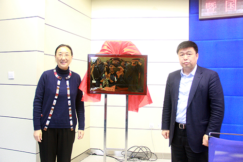 校长何颖,副校长、俄语学部主任严明为“黑龙江大学俄语学部”揭牌。