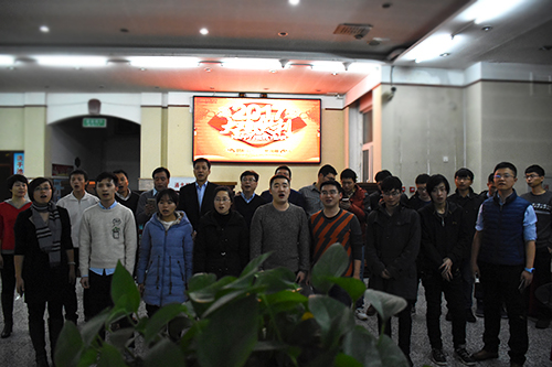 室外瑞雪纷纷,屋内情谊浓浓,气氛热烈,歌声不断。艺术学院大四学生唐能军为大家献上歌曲《晴天》,来自湖南的他表示,虽然因为实习工作没有来得及回家过年,但是留在学校,依旧让他过了一个难忘而特殊的“暖心年”。经理与工商管理学院大三学生张帅也以一首《单车》表达了对亲人的思念。老师们也纷纷参与,与同学们一起合唱校歌,将年夜饭的氛围推向高潮。