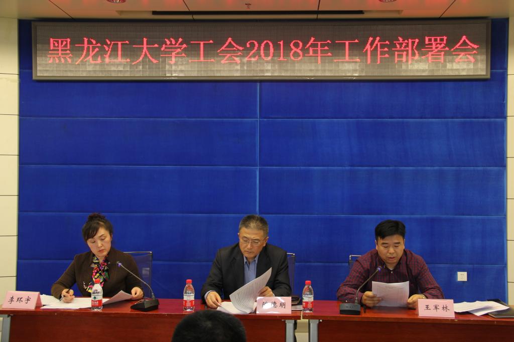 会上,校党委常委、工会主席陈德明作重要讲话。他指出,过去的一年是迎接党的十九大召开之年,也是全面落实中央群团会议精神的重要一年,学校工会在学校党委的领导下,突出抓好教职工的思想引领;着力于推进民主管理;全面推动群众性建功立业活动;大力推进黑龙江大学健康行动计划;努力提高教职工的获得感和幸福感,各方面工作都取得了新进展。学校工会获批多项示范基地,在上级工会组织的大型比赛中屡获殊荣,部门工会也荣获了多项先进集体和个人荣誉称号。同时,就新形势下如何开展好工会工作他还提出了四点要求:一要强化党的领导,切实保持和加强工会组织鲜明的政治性。要提高政治站位,强化政治担当,坚持教育引导;二要认真履行职责,找准工会工作的切入点和着力点。要做好凝心聚力工作,加强“职工之家”建设,开展特色活动;三要聚焦维权帮扶,落实以教职工为本的理念。要推进工会工作法治化建设,保持信息渠道畅通,努力做好维权帮扶工作;四要适应新时代,推动工会工作创新发展。要大力加强工会组织的自身建设,创新工会工作方式。
