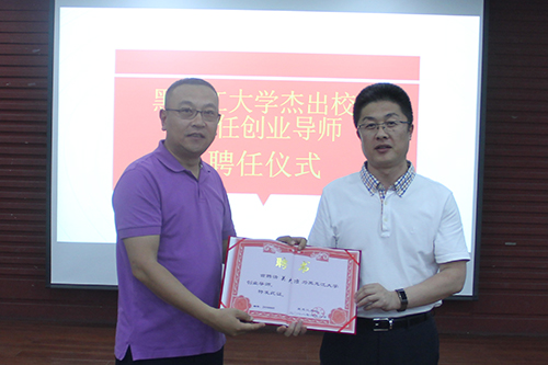 会后,与会人员前往学生科技文化创业园参观考察。在创业园多功能厅,陈文远副校长代表学校向校友企业家颁发了黑龙江大学创业导师聘任证书。