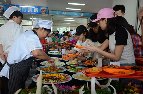 2018年是我校“餐饮服务质量提升年”,为践行《黑龙江省高校后勤系统“四零”承诺服务创建实施方案》,提升我校饮食服务中心技术队伍整体水平,加强校际合作,搭建南北高校餐饮厨师技能交流,满足广大师生对美好校园生活的向往,我校特举办三省四校“川杭哈”美食嘉年华活动。美食嘉年华活动自6月10日开始,至6月15日结束,期间高校大厨们会进行厨艺交流、每天中午在A区食堂一楼有杭帮菜品鉴、二楼有川菜品鉴、三楼有东北菜品鉴。在15日闭幕式上会展开厨王争霸赛的比拼,届时将评选出厨神、厨霸,期待您的关注。(摄影:陈雪茹 王青蛾)