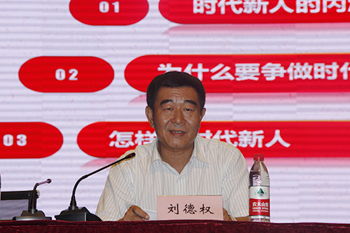 刘德权书记以《争做担当民族复兴大任的时代新人》为题,围绕学习贯彻习近平总书记的讲话精神,从三个方面进行了讲解:一是对时代新人的理解。“新人”是一个历史性概念,随着时代的发展,它的内涵会发生相应的变化。我们所说的时代新人,是习近平总书记立足于中国特色社会主义发展进入新时代的现实需要,提出的“担当民族复兴大任的时代新人”,是承前启后、既往来开的,是基于新时代、承担新使命、达成新境界的先进群体,是赋予新内涵的时代新人。作为时代新人的高校老师,要加强师德师风建设,以德立身、以德立学、以德施教。作为时代新人的学生,具有“理想、奋斗、本领、道德、奉献、实干、创新”七个特质。二是为什么要争做时代新人。国情的新变化、省情的新变化、高等教育的新变化都要求学校师生做时代新人。新时代新使命,需要一代有理想、有本领、有担当的时代新人才能胜任;我省制定的高等教育强省战略的实施和目标的实现,需要广大师生的积极参与并发挥作用;新时代高等教育迫切需要高校师生把自己锻炼成长为担当民族复兴大任的时代新人,担负起科教兴国、人才强国的历史重任。三是怎样做时代新人。教师要加强自我思想政治教育,发挥政治引领者作用;要加强师德师风建设;要加强业务能力建设,提高教学能力;要具有仁爱之心。大学生要努力践行习近平总书记提出的四点希望:要爱国,忠于祖国,忠于人民;要励志,立鸿鹄之志,做奋斗者;要求真,求真学问,练真本领;要力行,知行合一,做实干家。同时要做到坚定信念、夯实基础、实践贯通、积极参与。刘德权书记最后指出,高校教师和大学生是人民群众的一份子,要充分发挥变革社会现实的积极作用,抓住时代机遇,争做担当中华民族伟大复兴大任的时代新人,为实现人民美好生活的向往而奋斗!