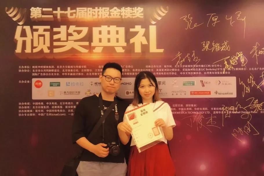 6月28日,第27届“时报金犊奖”颁奖典礼在北京大学举行,由黑龙江大学新闻传播学院广告学专业教师韩净指导、广告学专业双学位学生雷雯雄(2015级广播电视编导专业)和李锐(2015级英语专业)创作的广告作品《一起陪伴,来自星星的孩子》夺得第27届金犊奖影片类金奖和2018年度最佳金犊奖。这是黑龙江大学广告学专业继2007年获第16届金犊奖后再次获得金犊奖全场大奖。