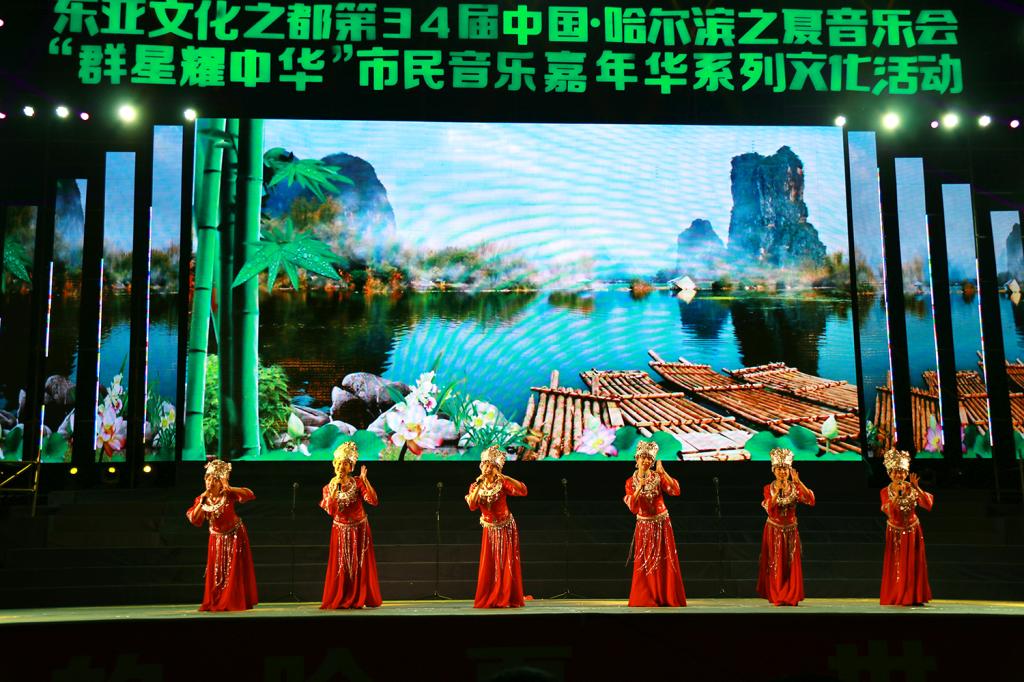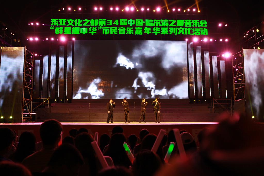 弘扬独特文化传统,彰显“音乐之城”魅力。7月9日晚,高雅艺术进校园特别活动,东亚文化之都第34届中国·哈尔滨之夏音乐会“群星耀中华”市民音乐嘉年华系列文化活动黑龙江大学专场演出在中央大街防洪纪念塔广场举行。本次活动由黑龙江省教育厅、哈尔滨市文化广电新闻出版局联合主办,哈尔滨市群众艺术馆、黑龙江卫视承办。校领导刘德权、蒋晶洁、丁宏、荣盘祥、陈德明,党委宣传部、校团委、工会相关负责人,艺术学院教师、学生代表与市民共享华美音乐盛宴。