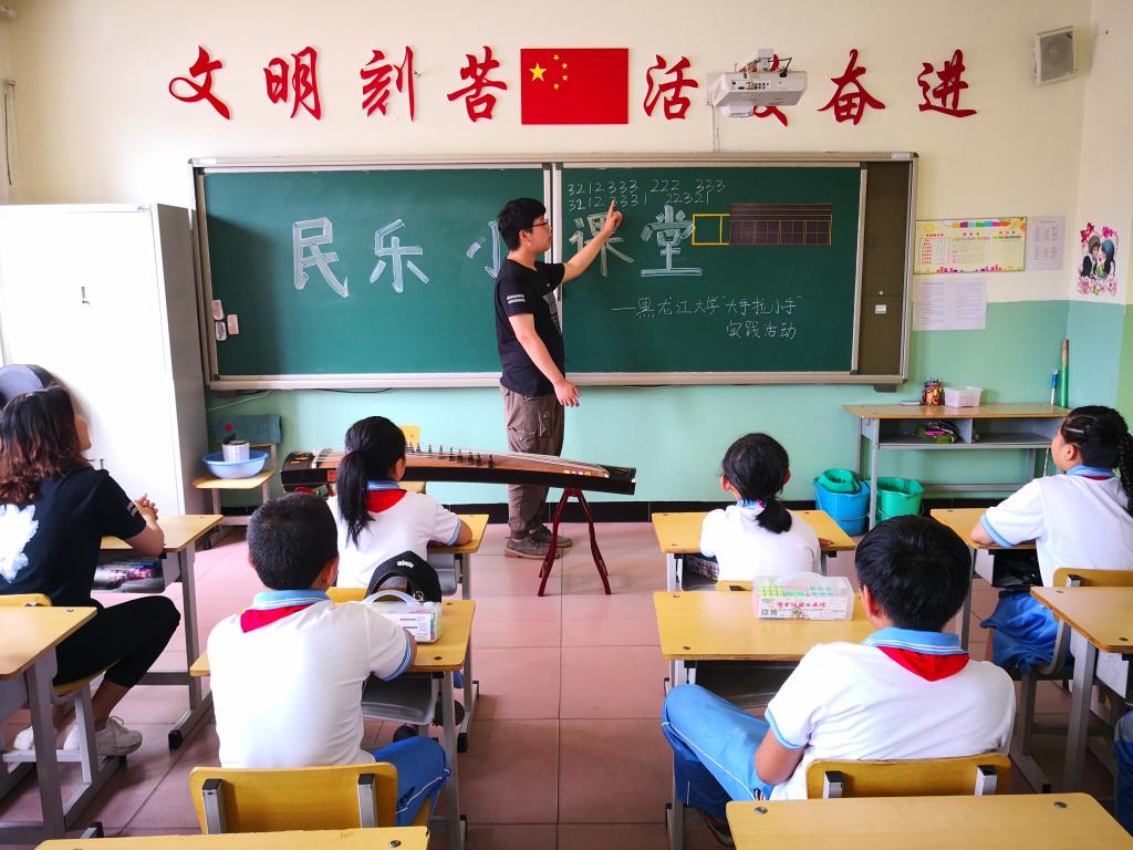 捐赠仪式后,为丰富孩子们的课外活动,陶冶情操,提升他们的艺术鉴赏力,黑龙江大学的大学生志愿者和来自黑龙江高校广播的主持人为孩子们带来精彩的七彩艺术课堂,民族舞蹈、民族乐器、西洋乐器、声乐表演、礼仪展示、朗诵和体育等体验课程让孩子们在轻松愉快的氛围里体验艺术的魅力,感受文化艺术的熏陶。