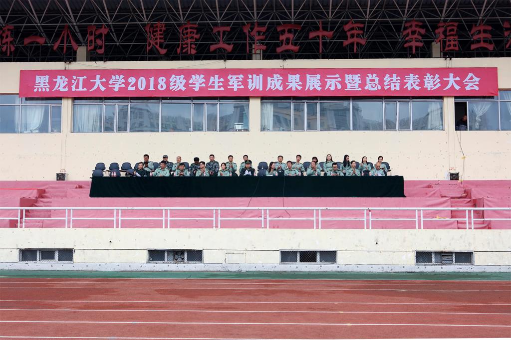 学工部部长、学生处处长、军训师政治部主任李石宣布《关于表彰黑龙江大学2018级学生军训先进集体和先进个人的决定》;校团委副书记、军训师政治部副主任周成刚宣布黑龙江大学2018级学生军训文体活动比赛成绩。本次军训共评选出52个军事训练先进连队,20个纪律内务优秀学院,28名优秀指导员,71名优秀教官,343名优秀学员。