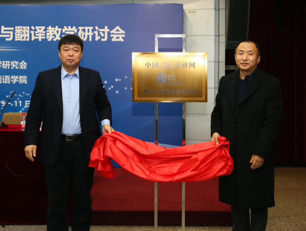 研讨会开幕式由黑龙江大学俄语学院院长孙超教授主持。黑龙江大学副校长严明教授致欢迎词,俄语学院党总支书记黄东晶教授宣读中国俄语教学研究会的贺信,文化部中国文化对外翻译与传播研究中心执行主任、北京语言大学徐宝锋教授致辞。随后,严明副校长和徐宝锋教授共同为中国文化译研网俄语专业委员会揭牌。