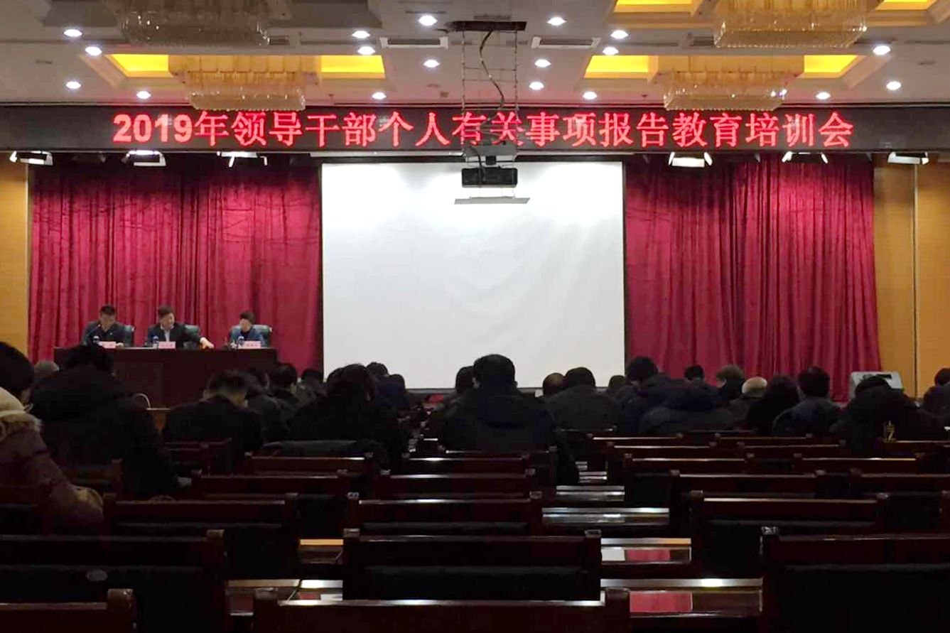 1月11日,我校主楼一楼报告厅召开2019年领导干部个人有关事项报告工作教育培训会,在校校领导及所有填报范围内的中层领导干部出席了会议,本次会议由党委副书记蒋晶洁同志主持。