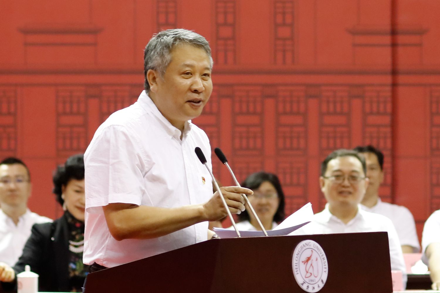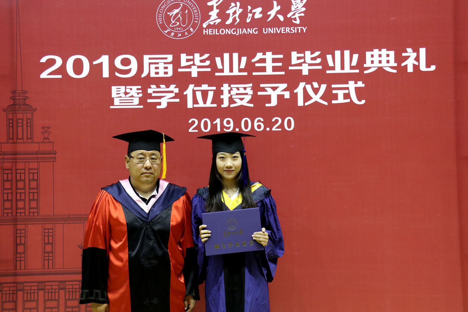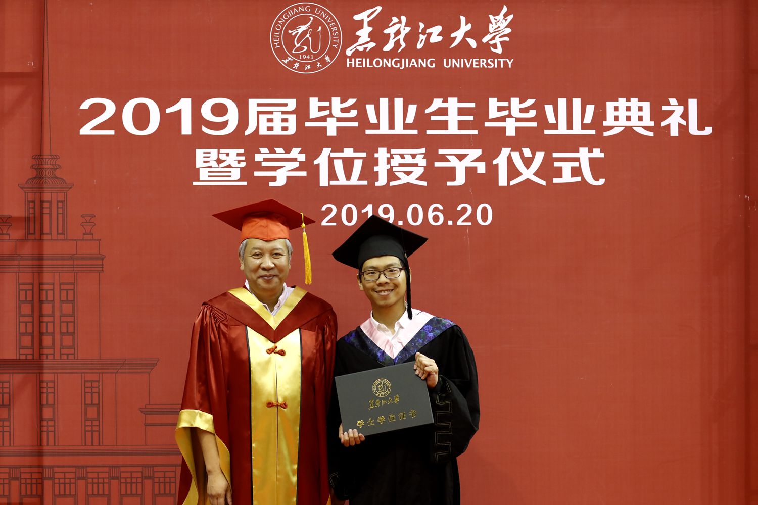 付宏刚校长把“天下兴亡,匹夫有责”、“梅花香自苦寒来”、“每临大事有静气,不信今时无古贤”三句话送给毕业生们。“做最好的黑大人”是他对毕业生们殷切的希望。他表示,做最好的黑大人,就要永葆赤子之心,这是黑大流淌不息、代代相传的精神血脉。始终感恩祖国和社会、感恩家庭和他人;做最好的黑大人,就是要始终秉持“博学慎思、参天尽物”的黑大校训,养成持续学习、终身学习的良好习惯和品格;做最好的黑大人,既要拥有上进心,也要拥有平常心,始终谦虚自信、善良真诚、淡定从容,就一定会拥有诗意的生活。“走出校园,你们就成了黑龙江大学的校友。这里承载了你们深厚的青春印记,也永远是你们的精神家园和休憩港湾,欢迎你们常回家看看,与母校同心携手,共同开创学校双一流建设和每一位黑大人的美好明天。愿你们带着黑大精神的行囊,永远高唱青春最美的歌!祝福你们,前方的路,更美好、更辉煌!”