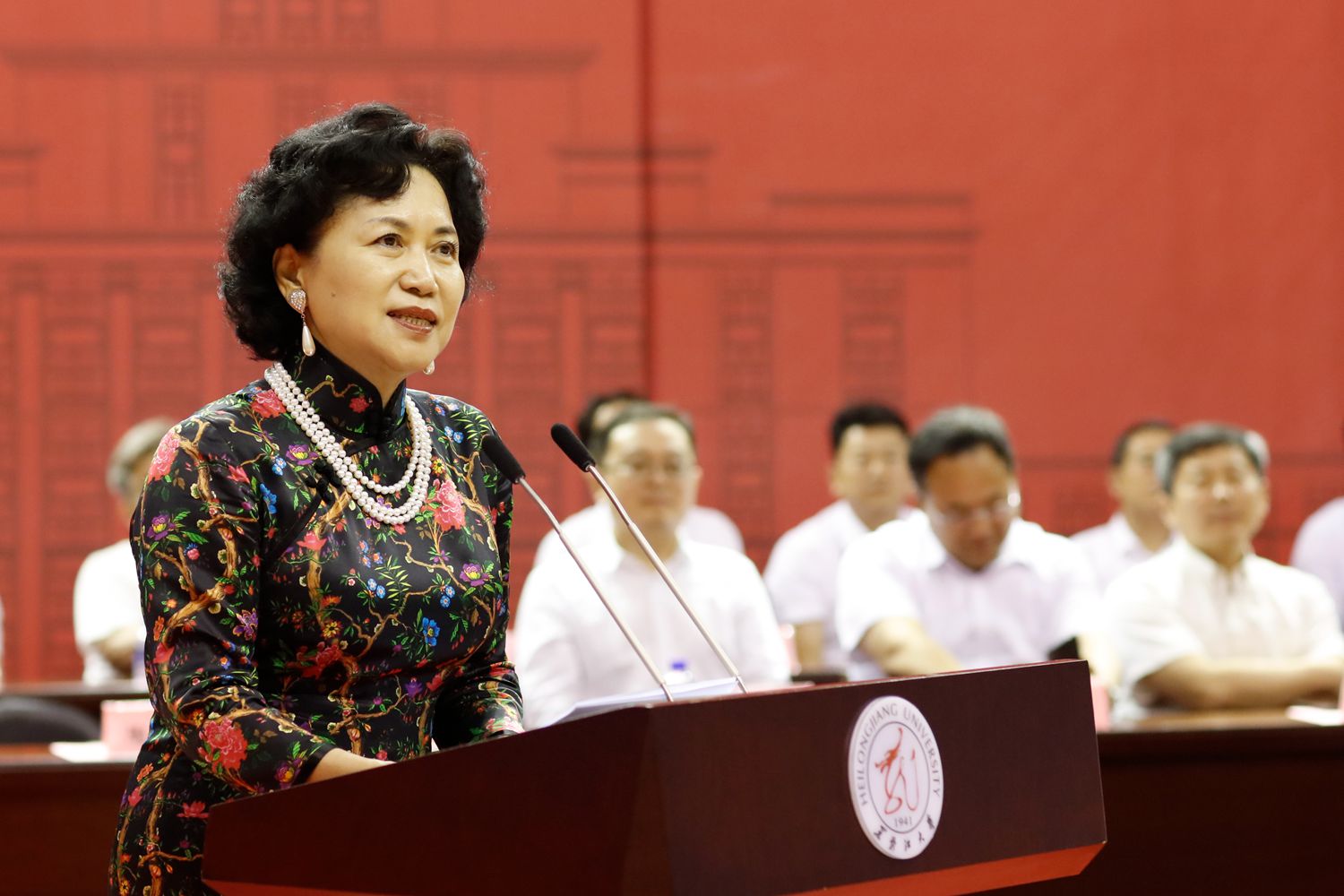 我校79级经济系校友,粤港澳校友会会长、著名经济特区问题专家陶一桃代表校友发言。毕业近40年的她动情地回想起自己与母校的难忘回忆,并与毕业生们分享了自己的人生经历和感悟。她感谢在黑大遇到的老师、同学们在自己遇到困难时给予的支持和帮助,希望大家满怀对母校的感激之情,带着对自己负责任的态度走向未来、走向社会,永远为自己是黑大人而骄傲。