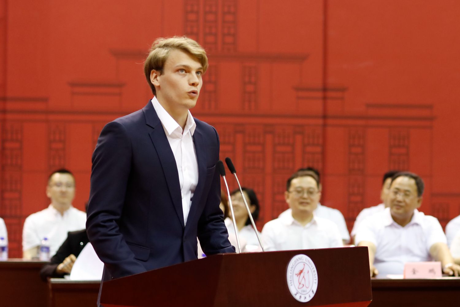 国际文化教育学院学生,来自俄罗斯的波多科里托夫·马克西姆代表留学生毕业生发言。他感谢母校带给他的知识、经验和友谊,在黑大学习期间,他感受到了中华文化的魅力、语言的博大精深、中国人民的热情,他爱上了中国,爱上了黑龙江这片黑土地。他深情地说,无论未来走到哪里,这里的一切,都将成为毕生难忘的经历。