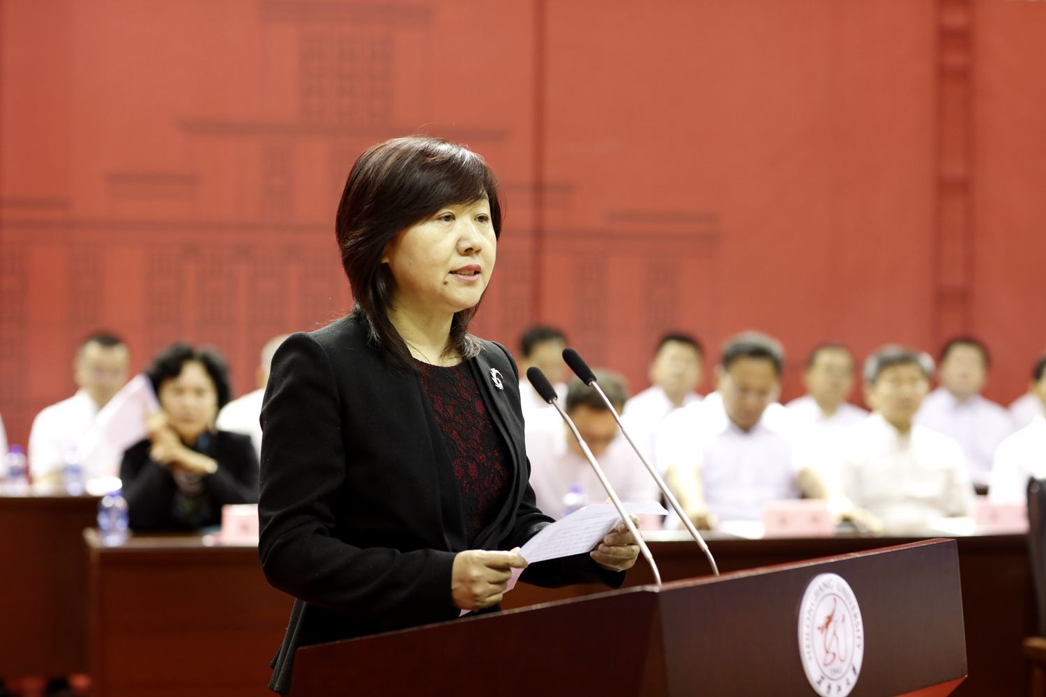 党委副书记蒋晶洁宣读了《黑龙江大学二〇一九届学生毕业资格审核报告》。
