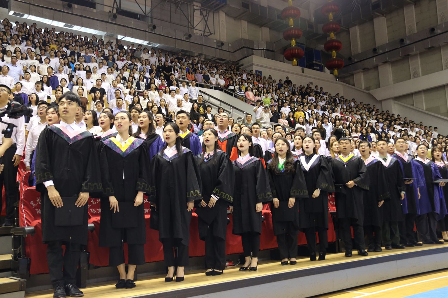党委副书记丁宏衷心希望同学们牢记母校的培养,带着师长的嘱托,重整行装再出发,开创人生发展新境界。“无论近在咫尺还是远在天涯,母校都在注视着你们,牵挂着你们,伴随着你们,祝福着你们。在奋斗的路上,黑龙江大学永远是你们的坚强后盾和精神家园。祝全体毕业生毕业快乐、一路平安、前程似锦!”话音落下,体育馆响起长时间热烈的掌声,2019届毕业生毕业典礼圆满落下帷幕。