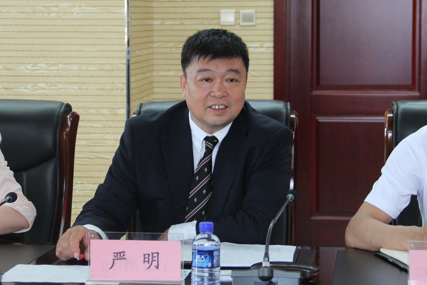 严明副校长对日本札幌大学代表团的到来表示热烈欢迎。他简要介绍了学校的学科门类、人才培养、学科建设等方面情况,表示学校一直以来高度重视国际合作与交流,希望以此次荒川理事长来学校访问为契机,与札幌大学建立友好合作关系,今后在科研合作、学术交流、师生互访等方面开展广泛的交流与合作,为推动黑龙江省与北海道的教育交流与合作事业贡献力量。