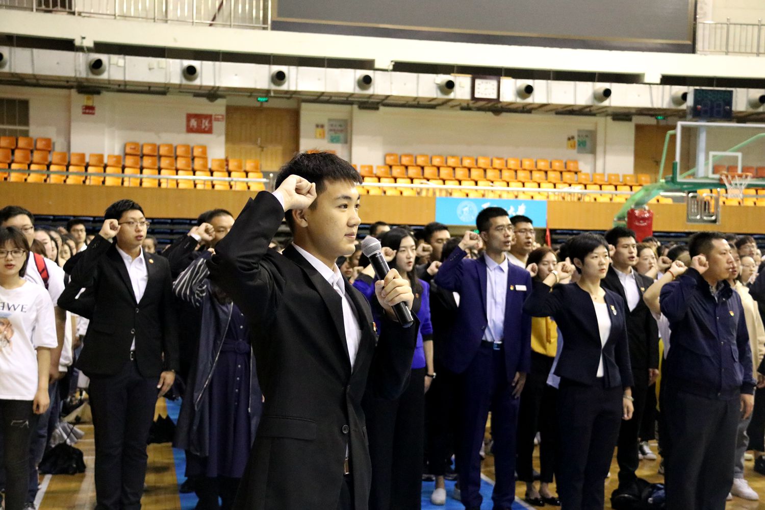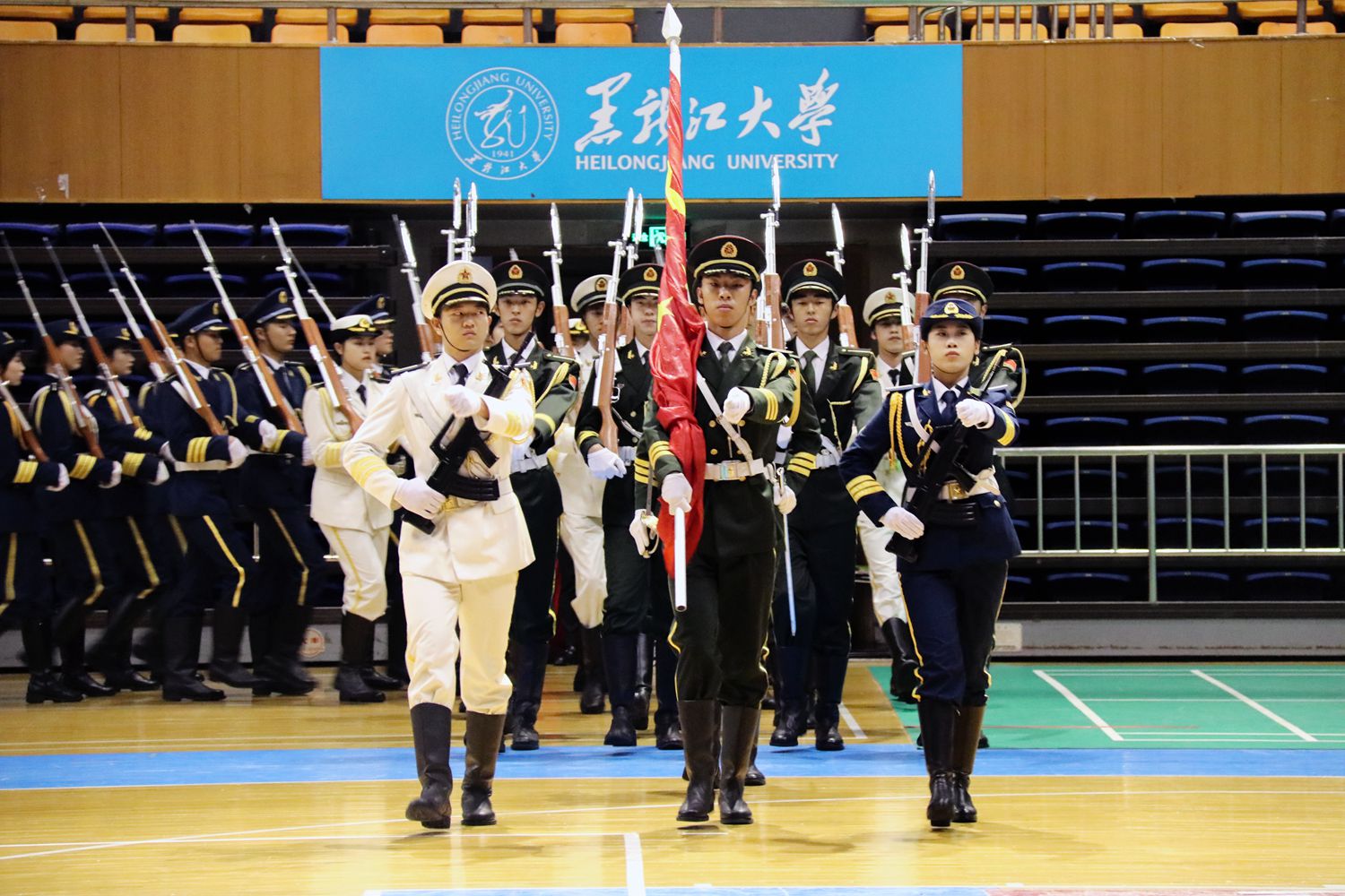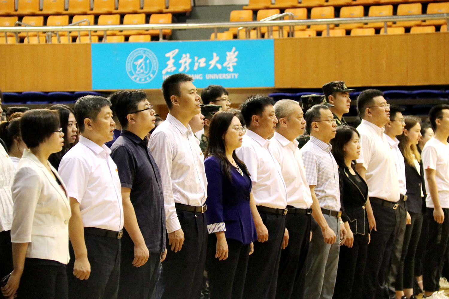 伴随着五星红旗冉冉升起,全场齐唱国歌,大家深情地回顾了我党与人民一路书写过的波澜壮阔,由衷为民族独立,国家富强做出贡献的英雄们致敬。