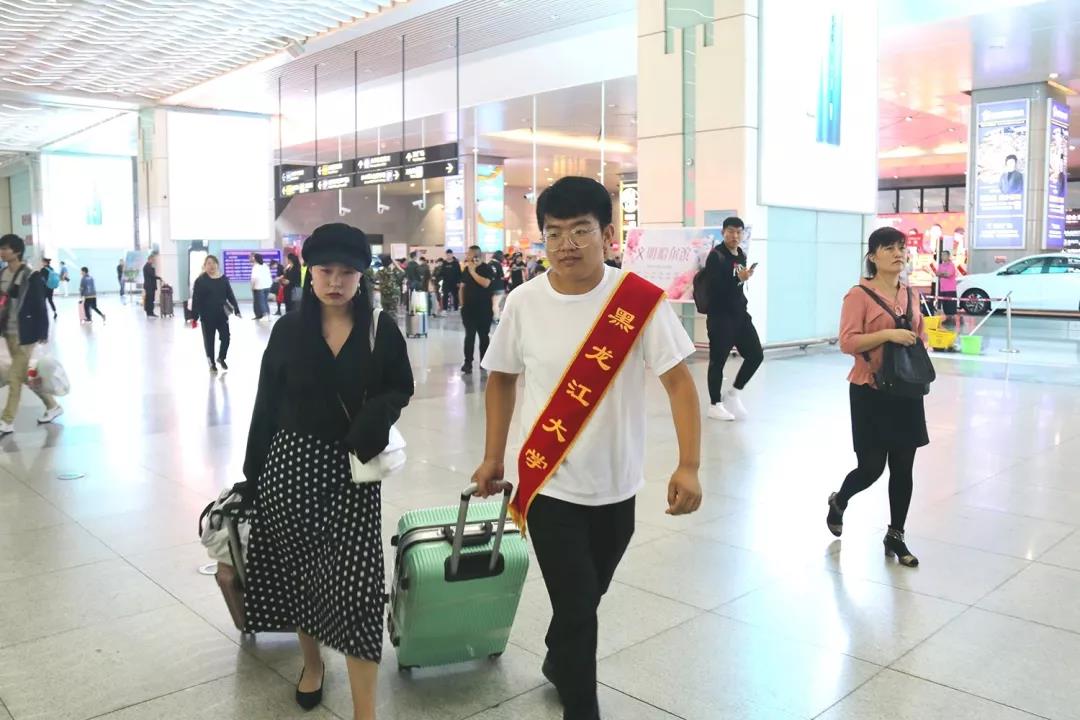 从各地奔赴来黑大的旅途劳顿,在下车看见接站师生温暖笑容的那一刻散去。一路上,老师为学生和家长详细解答学习问题、注意事项,讲解员们热情地介绍学校的历史与校情,为新生开启第一扇了解学校的大门。