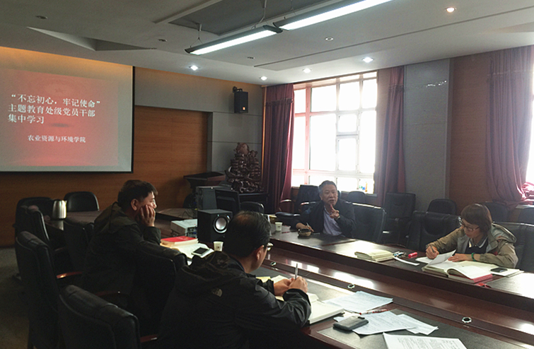 付宏刚校长赴联系点现代农业与生态环境学院督查指导“不忘初心、牢记使命”主题教育。他检查了学院处级党员干部“不忘初心、牢记使命”主题教育的近期学习情况,翻阅了同志们的学习笔记、学习材料,充分肯定了同志们能够静下心来,原原本本、原汁原味地读原著、学原文、悟原理的学习态度,并希望在未来的主题教育中能够做到多思多想、学深悟透,融会贯通,真正做到往深里走、往心里走、往实里走。付宏刚校长对学院“不忘初心、牢记使命”主题教育的开展给予了充分肯定,同时对学院整合后的学科发展及人才队伍建设、学院今后的发展提出了具体要求。