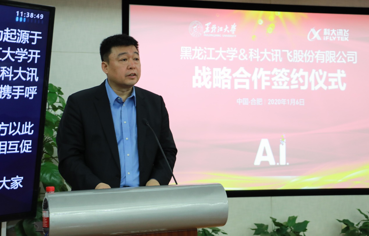 严明副校长在致辞中表示,黑龙江大学与科大讯飞股份有限公司将充分发挥高校与科技企业在各自领域的核心优势,在产、学、研方面建立互相支持、互相依托、共同发展的长期战略伙伴关系。