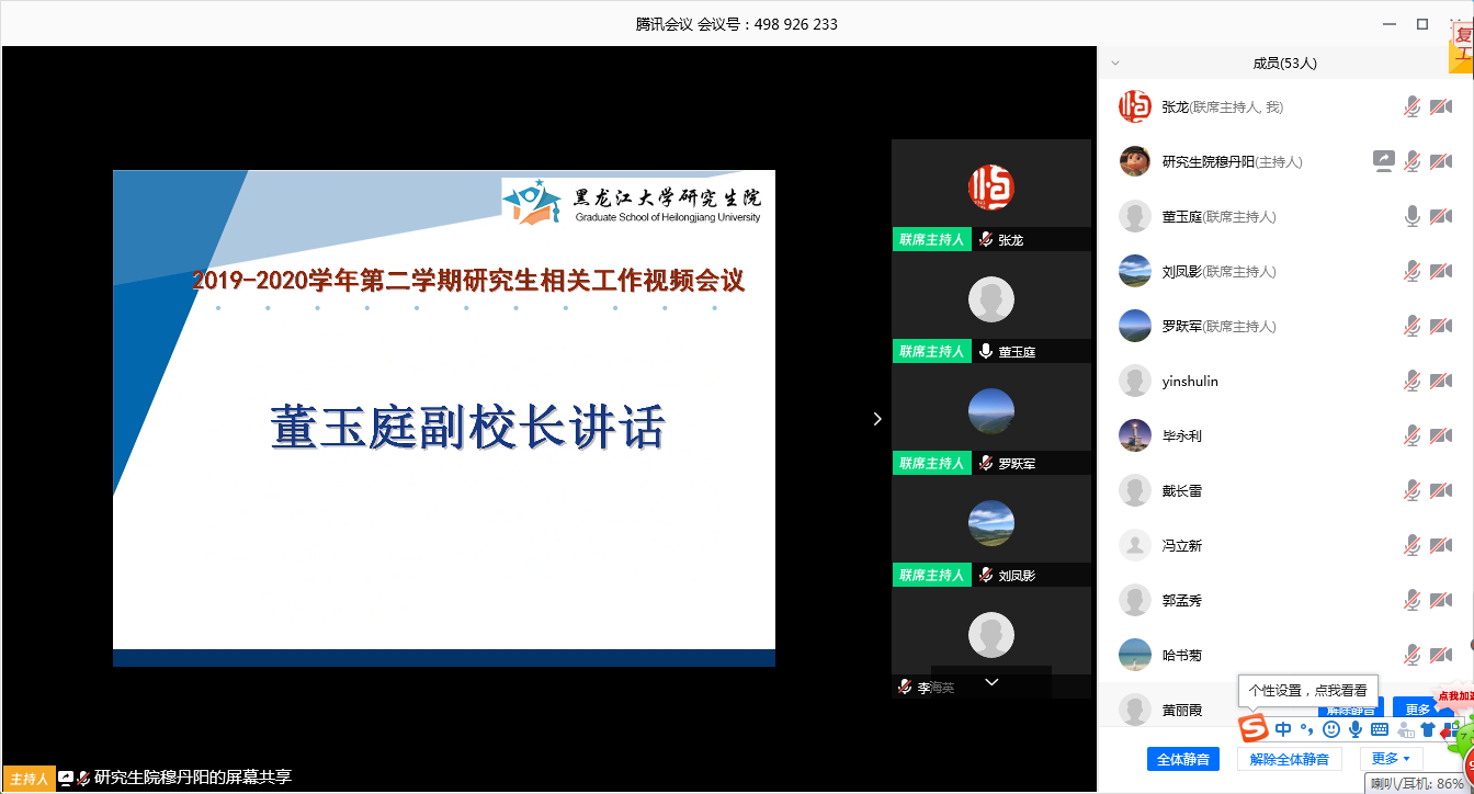 2月28日下午,我校召开2019—2020学年第二学期研究生工作视频会议。我校校长付宏刚、副校长董玉庭,研究生院领导、各研究生培养单位主管研究生工作领导及研究生院相关工作人员等参加会议。会议由研究生院院长罗跃军主持。