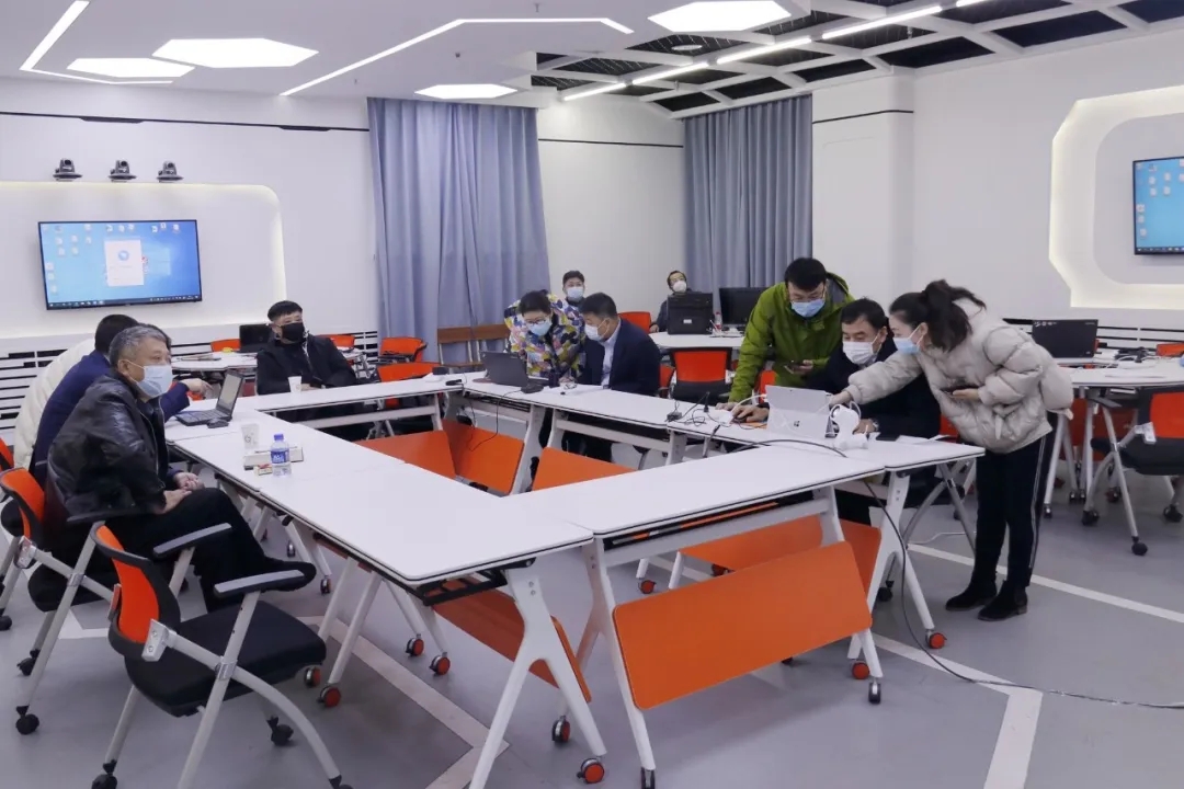 早晨八点,在学校的智慧教室,校长付宏刚,副校长严明、张颖春,以及学校教务处等相关部门的负责同志准时坐在了课程展示屏幕面前,设备先进的智慧教室成为了此次网上教学实施的指挥部、调度中心,更是网上教学课程质量的监控站。
