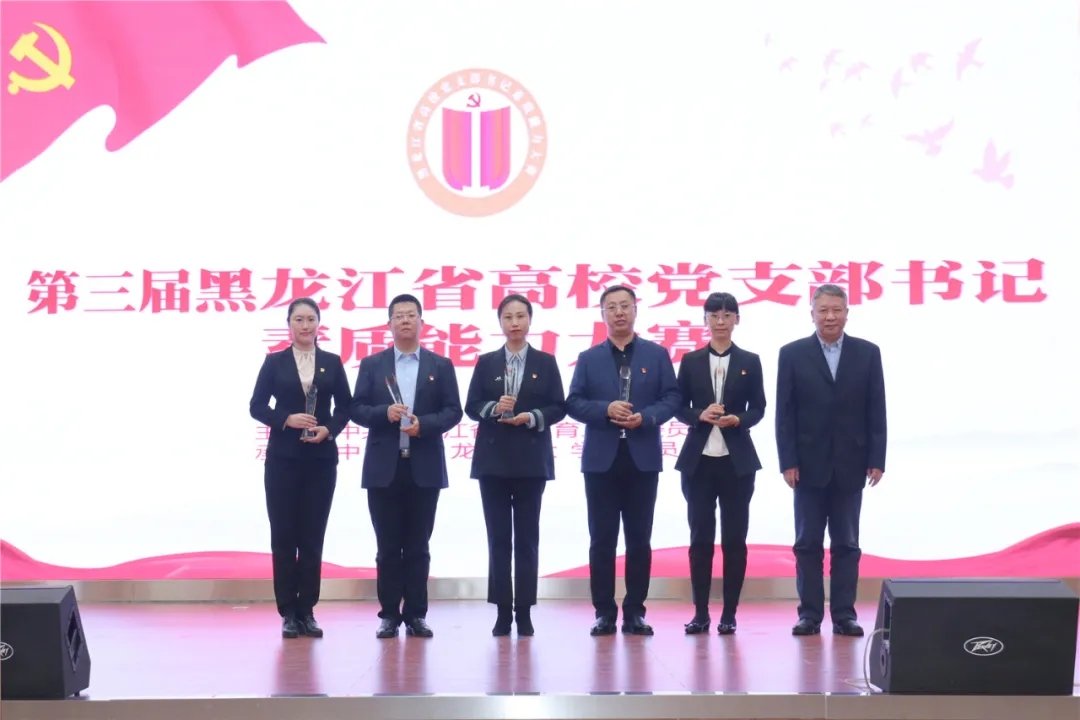 为深入学习贯彻落实习近平新时代中国特色社会主义思想和党的十九大、十九届五中全会精神,持续提升全省高校党支部书记素质能力,全面展示“双带头人”培育工程实施成效,11月18日至20日,由黑龙江省委教育工委主办的第三届黑龙江省高校党支部书记素质能力大赛在我校举行。省委教育工委副书记王震、我校校长付宏刚、省基层办副主任孙世君、我校党委副书记蒋晶洁出席大赛,并为获奖选手颁奖。