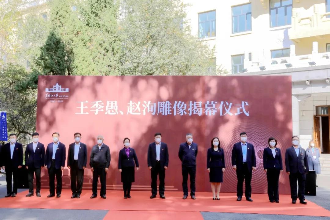 在黑龙江大学建校80周年之际,为纪念老校长对学校和新中国外语教育事业作出的突出贡献,9月24日上午9时,我校在主楼D座广场举行王季愚、赵洵雕像揭幕仪式。全体校领导,王季愚老校长的学生代表、《俄汉详解大辞典》编者之一、俄语学院离休教师陈叔琪教授,雕像设计者、艺术学院匡石副教授,机关职能部门负责人,学院党政负责人代表等参加仪式。