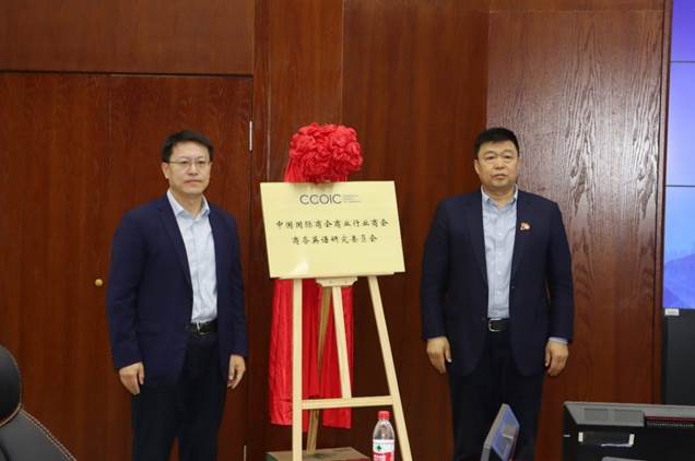 在随后的揭牌仪式中,严明副校长和钟卫东副校长为中国国际商会商业行业商会商务英语研究委员会的成立揭牌。