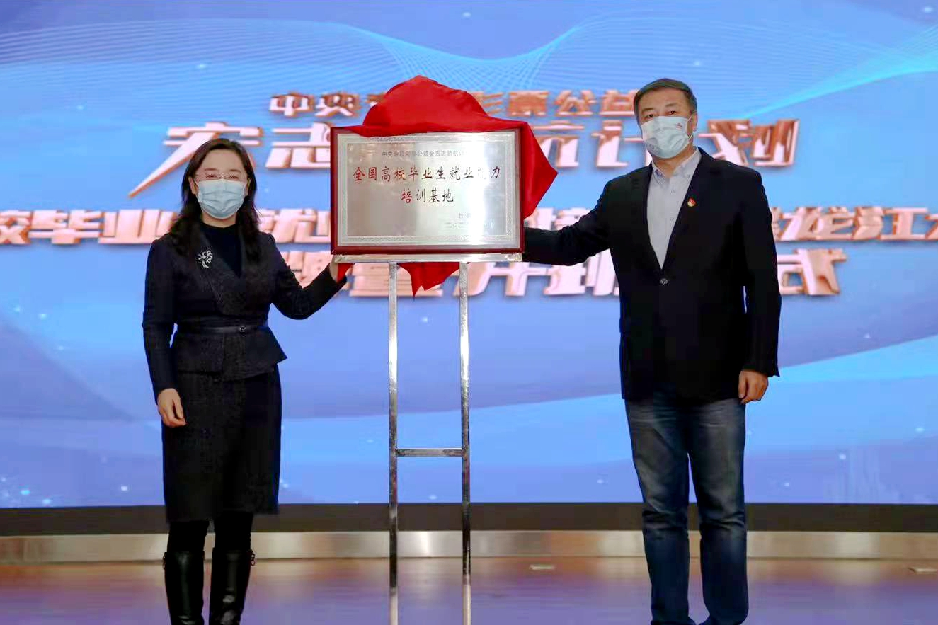 刘鸿宇副主任和丁宏副书记共同为黑龙江大学“全国高校毕业生就业能力培训基地”揭牌。仪式上宣读了首期培训班主讲教师名单。与会领导为教师代表颁发聘书。
