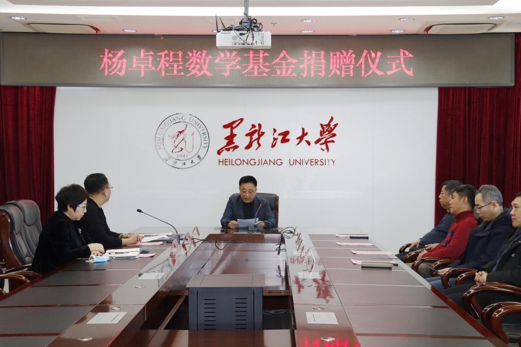 1月5日上午,黑龙江大学在主楼A802会议室举行77级数学专业优秀校友杨卓程家属的捐赠仪式。我校副校长张颖春,数学科学学院、学校办公室(校友办)、教育发展基金会相关负责人,以及杨卓程母亲钮薇娜、夫人路虹、女儿杨佳文等亲属和部分数学专业校友参加仪式。本次仪式由数学科学学院院长唐孝敏主持,以线上线下相结合的方式举行。