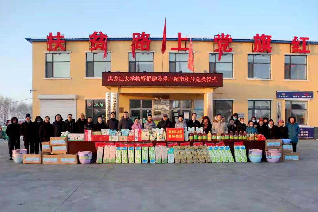 离开村民家,在光辉村村部广场举行了“黑龙江大学助力乡村振兴教职工爱心捐赠仪式”。王永清代表学校向光辉村捐赠了在教师节期间开展的“不忘初心献爱心、践使命情暖人间”活动中教师捐赠的3878件价值25万元生活物资和学校工会组织教师书写的春联200幅,光辉村党支部书记王海滨代表村民接受捐赠。