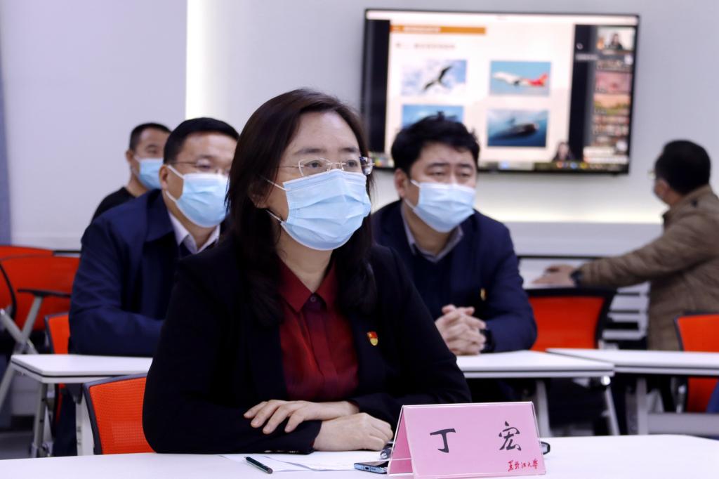 为进一步贯彻落实习近平总书记在学校思想政治理论课教师座谈会上的重要讲话精神,全面提升学校思政课教学质量,3月18日上午,在习近平总书记“3.18”重要讲话发表三周年之际,学校思想政治理论课建设领导小组组长学校党委书记王永清、校长付宏刚,领导小组常务副组长学校党委副书记丁宏,副组长副校长严明,会同教务处、马克思主义学院相关负责同志来到智慧教室,深入思政课课堂检查教学质量并指导教学工作。