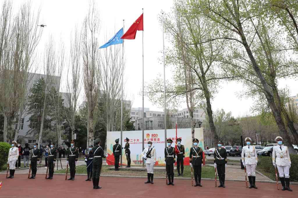 青春心向党,建功新时代。为进一步学习贯彻习近平总书记在中国人民大学考察时的重要讲话精神,弘扬伟大五四精神,庆祝中国共青团成立100周年,5月4日早7时,我校在联通广场举行纪念五四运动103周年主题升旗仪式。按照疫情防控工作要求,校党委书记王永清,校长付宏刚,党委副书记丁宏,纪委书记梁东辉,副校长严明、张颖春、李卓,学校相关职能部门负责人、部分学院主管学生工作领导、在校生代表线下参加升旗仪式,全校3万余名师生相聚“云端”,线上参加升旗仪式,共同庆祝“五四”青年节。