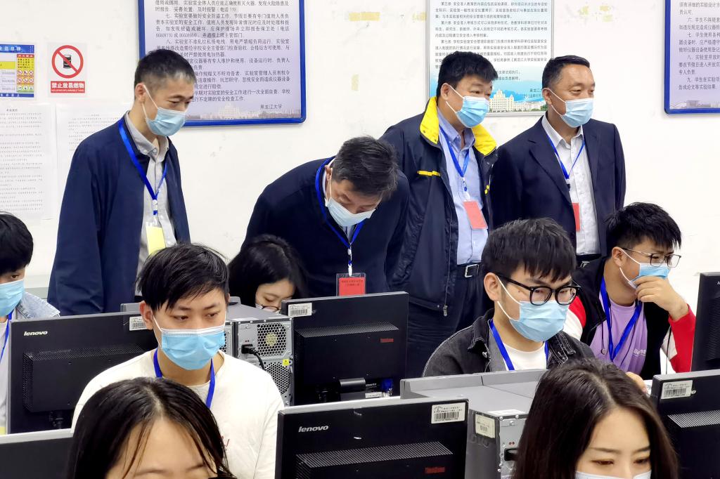 李石院长深入各学科组评卷机房,详细了解各科目评卷工作流程,认真听取学科组长关于评卷进度及质量监控等工作汇报,仔细询问疫情防控、后勤保障方面学校采取的相关措施。李石院长代表省招生考试院对黑龙江大学多年来克服困难,精心谋划,认真组织,高质量零差错的完成高考评卷任务表示衷心感谢。他指出,今年我省高考人数再创新高,评卷任务更加艰巨,高考承载着为国选才的重大使命,关乎教育公平公正,牵动几十万家庭的切身利益,希望全体评卷人员要高度重视,认真履职尽责,严格按照“标准统一、宽严一致”的工作要求细致、严谨地评阅每一份试卷、每一道答题,保质保量完成今年的高考评卷工作。