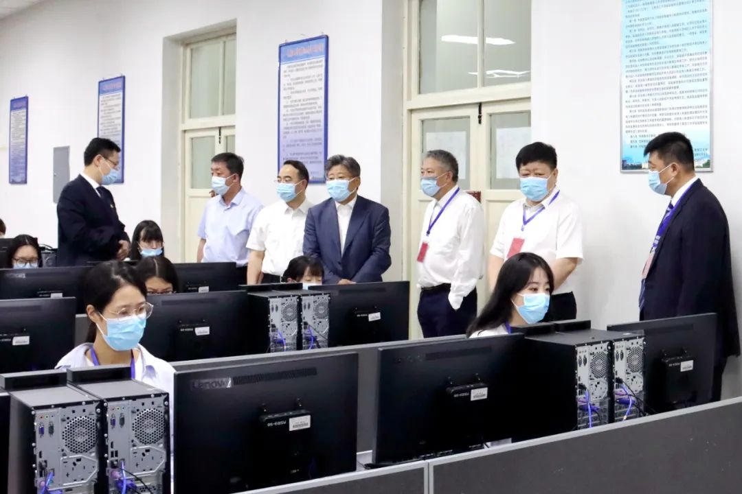6月18日上午,副省长孙东生,省教育厅党组书记、厅长陈延良,省招生考试院党委书记、院长李石一行到我校检查指导2022年高考评卷工作,亲切慰问评卷人员。校党委书记王永清、校长付宏刚、副校长严明,学校相关部门负责同志陪同检查。