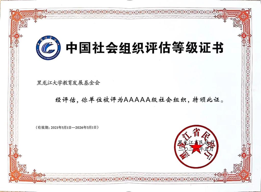 根据黑龙江省民政厅发布的《关于2020年度全省性社会组织等级评估结果的通知》,我校教育发展基金会获得社会组织评估最高等级“5A”级。6月23日上午,省民政厅有关领导向我校教育发展基金会授牌。此次评估中,全省有20家社会组织获得“5A”级资质,其中高校基金会共2家,分别是黑龙江大学教育发展基金会、哈尔滨工业大学教育发展基金会。