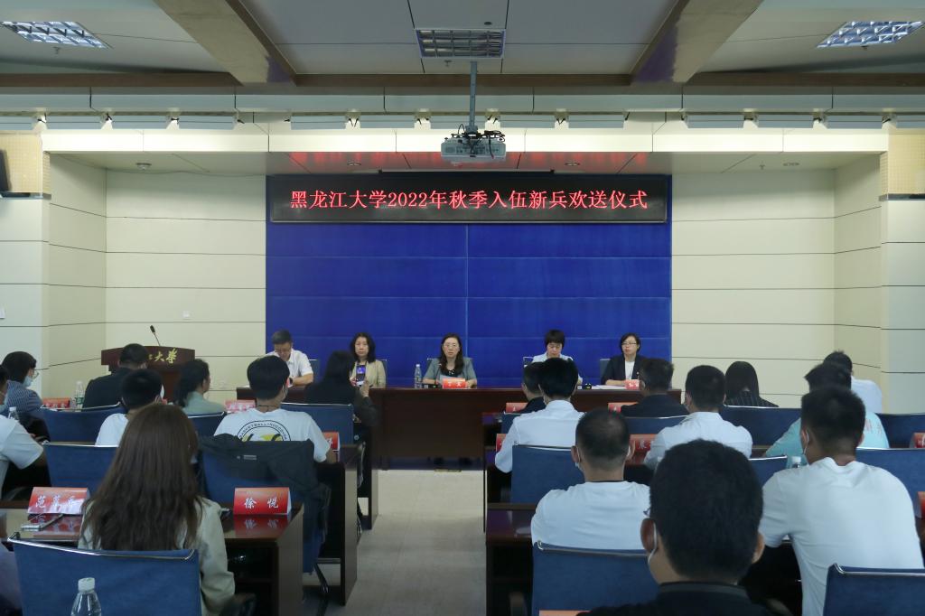 8月31日上午,黑龙江大学2022年秋季入伍新兵欢送会在主楼A座226楼会议室举行。校党委副书记丁宏出席会议并讲话,学生工作部(学生处、武装部)、相关学院主管学生工作领导、辅导员、退役大学生士兵代表及全体在校新兵参会,应届毕业生及因疫情原因未能返校入伍新兵通过线上腾讯会议形式同步参会。会议由学生工作部(学生处、武装部)部(处)长刘凤影主持。