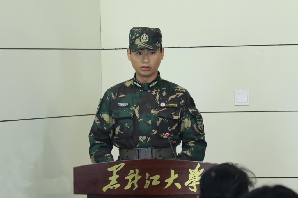 随后,退役大学生士兵代表和入伍新兵代表分别发言。在校退役大学生士兵代表、校退役大学生士兵协会主席、机电工程学院2019级学生孙志鑫发言,他结合自身入伍经历向在场新兵介绍了参军体验、相关政策及学校退役复学政策,并以自身经历及所获荣誉激励新兵在军营中要强化使命担当,退役复学后也要退伍不褪色、永葆军人本色。政府管理学院2021级学生解志远作为入伍新兵代表发言,他首先对武装部在同学们参军入伍过程中给予的指导帮助和人文关怀表示衷心感谢,并代表全体应征入伍学生郑重承诺,作为一名预定新兵他一定会始终牢记黑大校训,在军营中传承黑大精神,讲政治、听指挥、跟党走,训练中不怕苦累,努力将个人理想追求融入强国强军伟业中。