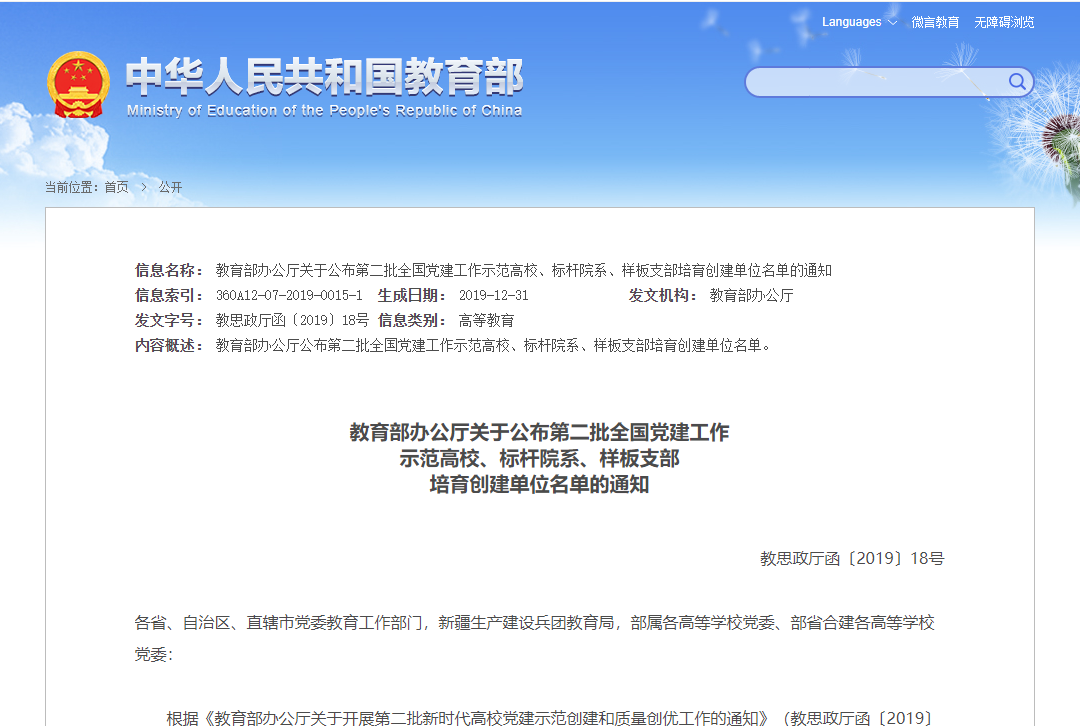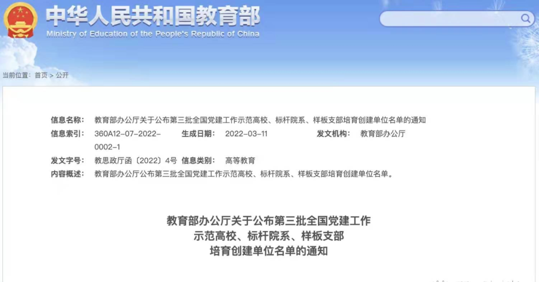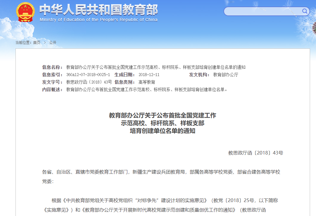 哲学学院党总支入选“全国党建工作标杆院系”培育创建单位,哲学学院教工第二党支部、机关党委学校办公室党支部入选“全国党建工作样板支部”培育创建单位