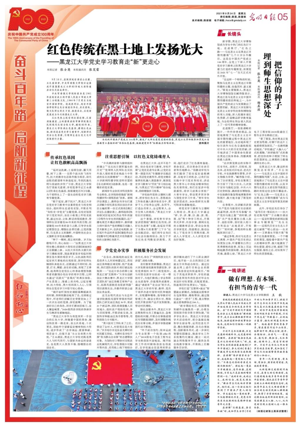 2021年9月,《光明日报》对学校党史学习教育情况进行整版报道
