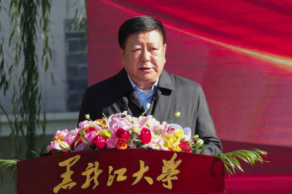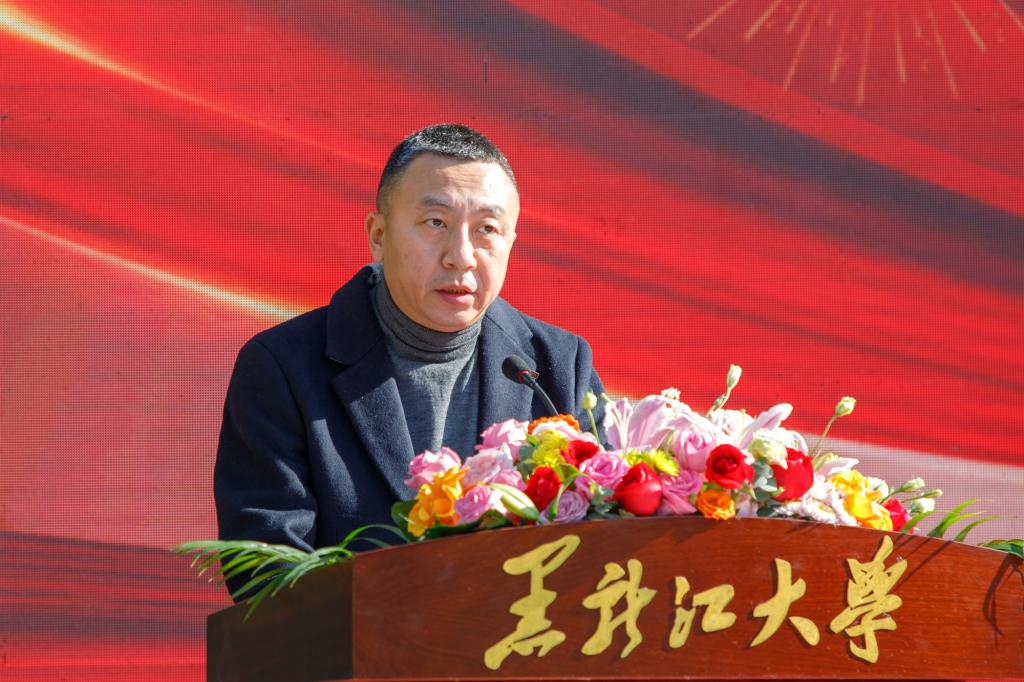 王永清在仪式上致辞。他代表学校向给予新文科新工科大楼项目筹建支持、工程建设、施工和监理的各级单位表示诚挚的敬意,向辛勤工作的各位同志表示亲切的慰问。王永清指出,新文科新工科大楼建设项目能有效破解实验用房紧张等瓶颈问题,极大改善学校办学条件,为学校夯实新文科新工科专业建设基础、加快培养紧缺人才、增强服务国家战略和地方经济社会发展能力、提升办学影响力提供了重要的载体和契机。王永清表示,新文科新工科大楼的建成将为黑龙江大学教育发展增添新地标,在后续施工中学校期望与参建各方和全体参建人员一道再接再厉,继续保持项目建设热情,继续发扬团结合作、锐意进取精神,确保新文科新工科大楼早日顺利竣工,让省委省政府放心,让广大师生满意,向党的二十大献礼。