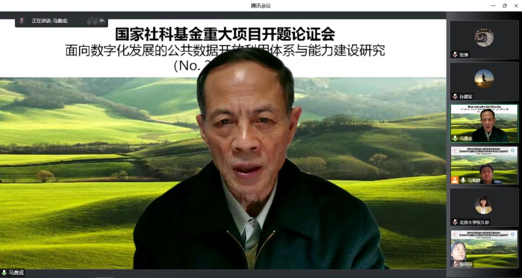 最后,开题专家组组长武汉大学马费成教授进行总结发言并宣读了专家组开题决议,评议专家一致同意国家社科基金重大项目“面向数字化发展的公共数据开放利用体系与能力建设研究”通过开题。