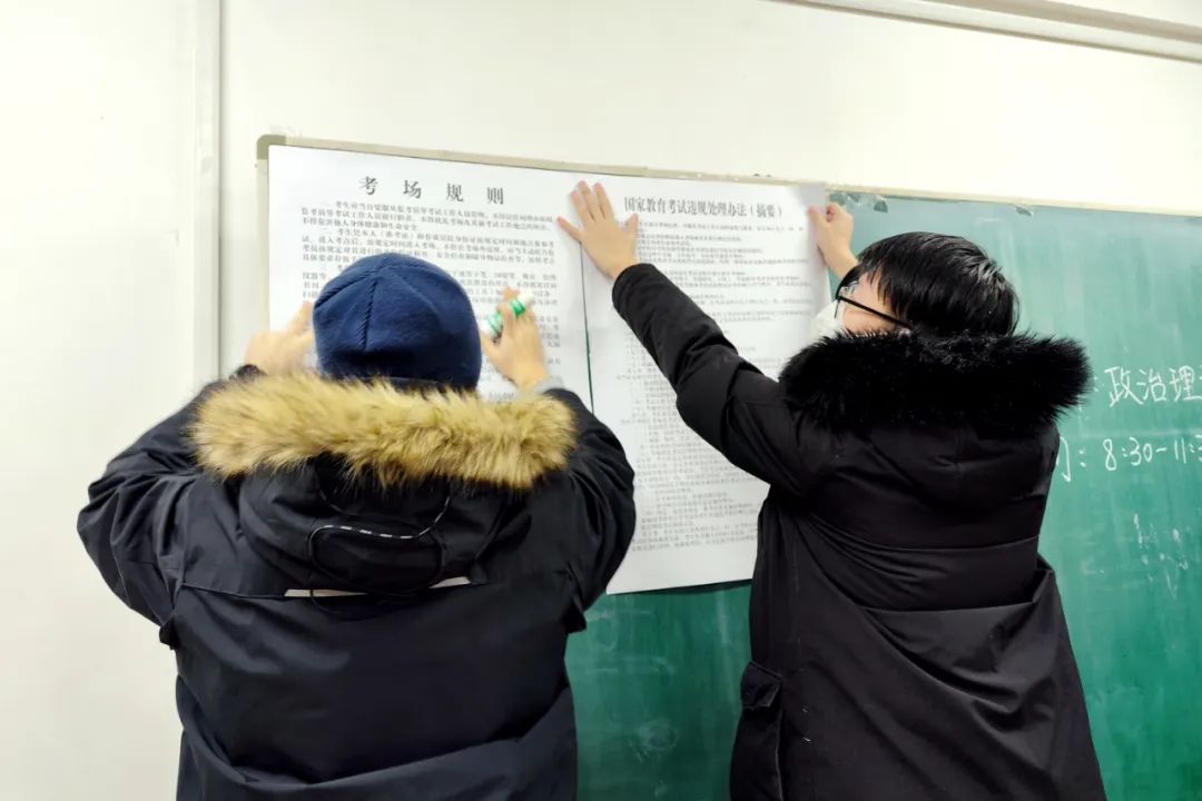 考前,我校考点工作人员对所有考场进行细致的布置,考务用品、防疫物资、考场桌贴、确认考生名单、考场消杀等工作流程都一一演练,主管研究生工作校领导到现场进行检查指导,对可能存在问题的环节现场整改,确保组织考试严格规范。加强对试卷运送、保管、交接、分发、回收等环节的管理,统筹调度、精准监管、全程跟踪,确保研考各类试卷配备到位、信息统计到位、安全保密到位。