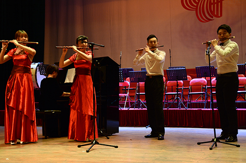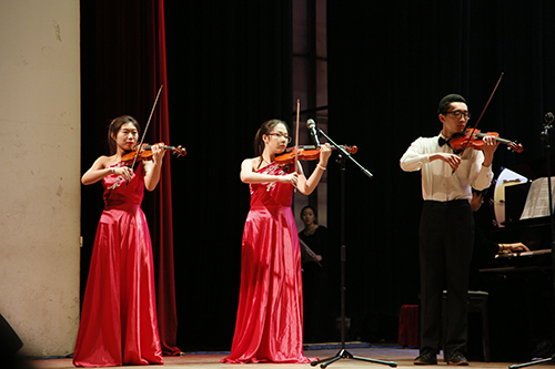 本次音乐会共演出两场,表演形式丰富多样,包括交响合唱、管弦乐合奏、混声合唱、小提琴齐奏、竹笛重奏、男中音独唱和女高音独唱等。热情活泼的交响合唱《在希望的田野上》表达了对我校蓬勃发展的美好祝愿,拉开了本次音乐会的序幕。交响合唱《四渡赤水出奇兵》引起了观众共鸣,向大家重现了当年红军在横断山脉行军的艰难以及百姓送水解渴的军民鱼水之情。