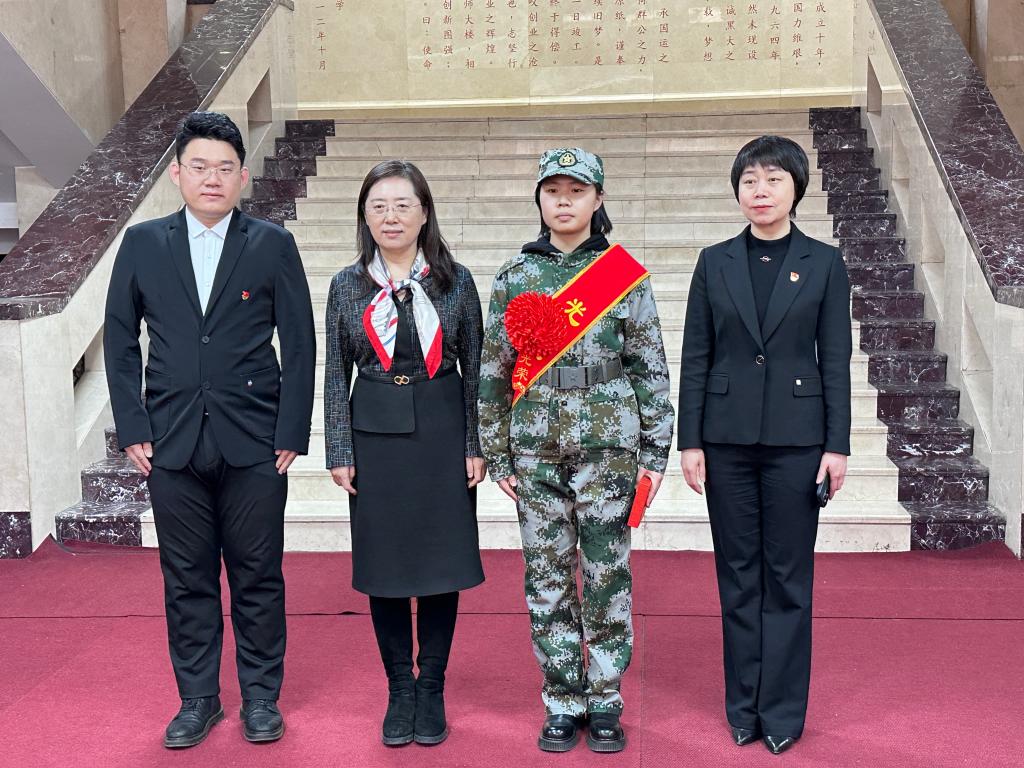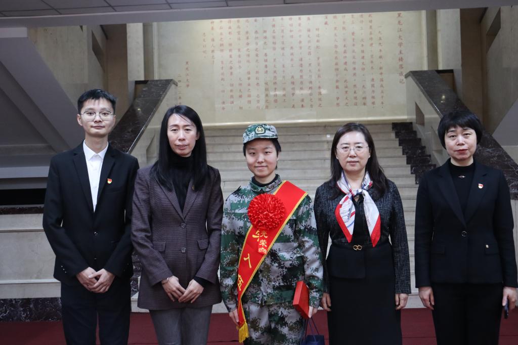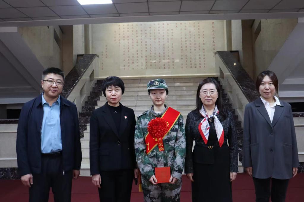 3月9日上午,黑龙江大学2023年春季入伍女兵参加役前集训欢送仪式在主楼一楼大厅举行。校党委副书记丁宏出席仪式并讲话,学生工作部(学生处、武装部)、相关学院主管学生工作领导及辅导员、退役大学生士兵代表及全体预定女兵参加仪式,学生工作部(学生处、武装部)部(处)长刘凤影主持仪式。
