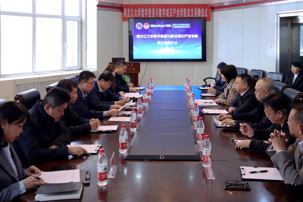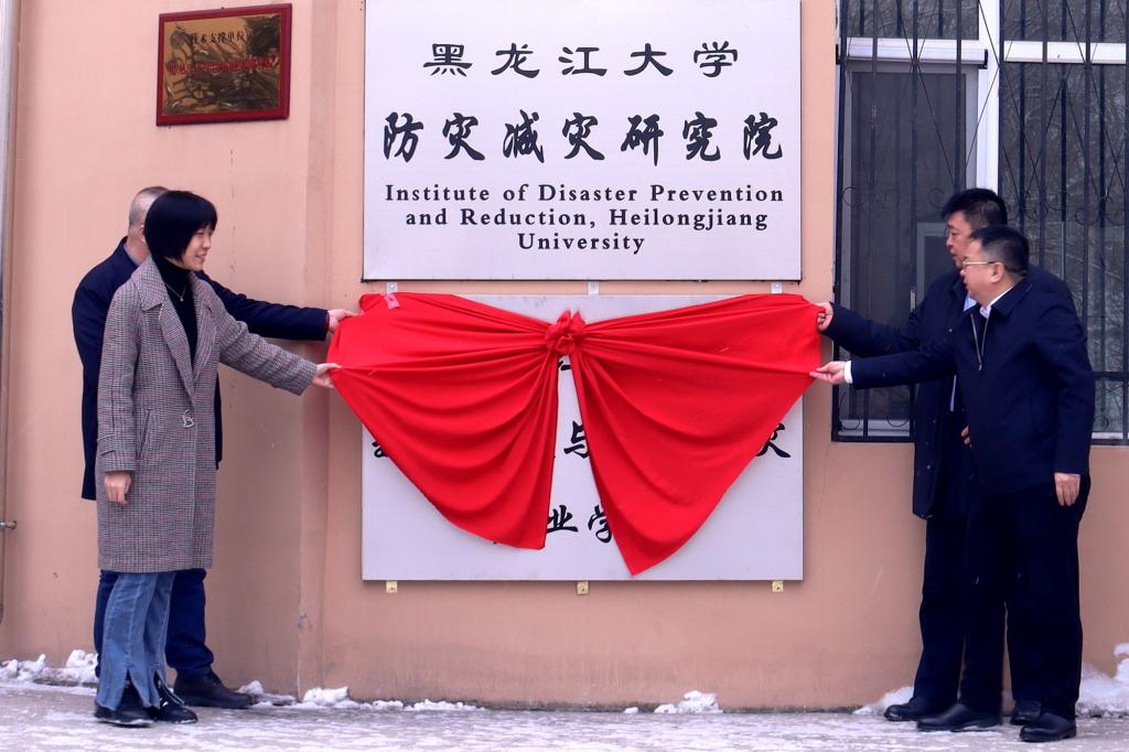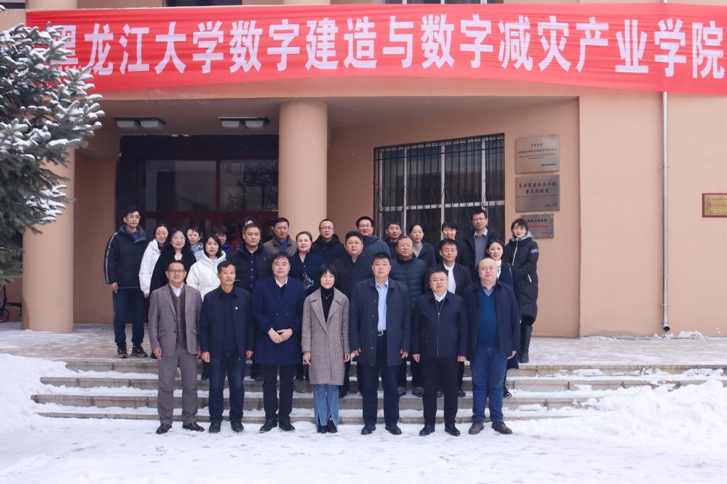 与会领导和嘉宾共同为“黑龙江大学数字建造与数字减灾产业学院”揭牌。