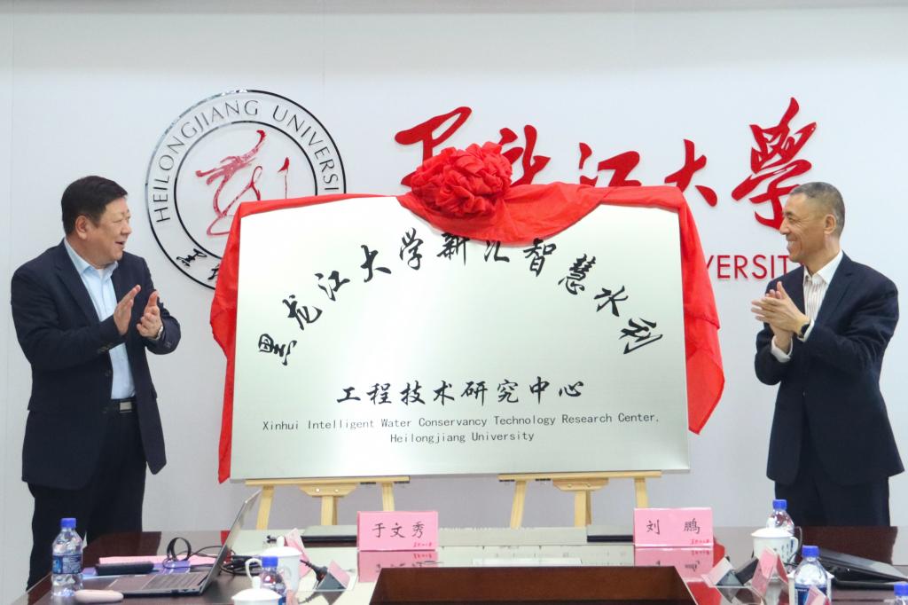 王永清与刁锋共同为“黑龙江大学新汇智慧水利工程技术研究中心”揭牌。