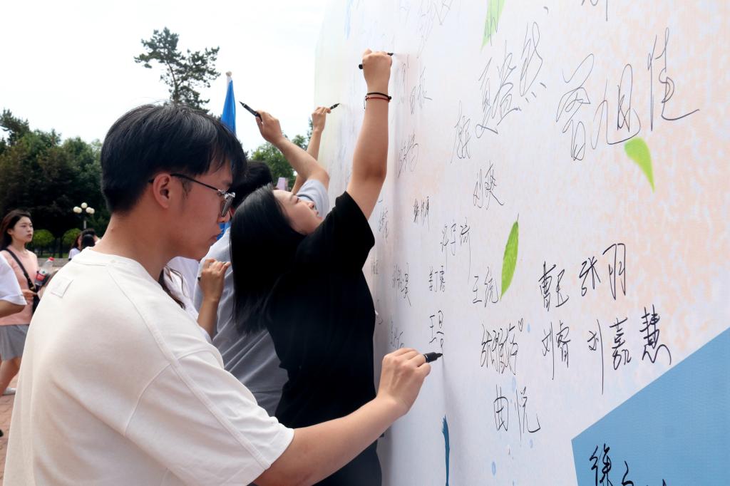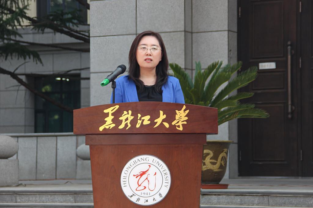 丁宏在活动上讲话。她指出,今年毕业季期间,学校各部门、各学院竭尽全力推进毕业生离校工作,专门制定了《黑龙江大学2023届毕业生离校工作方案》和《黑龙江大学2023年毕业生离校“十五个一”主题教育活动方案》,本次校园徒步活动是毕业离校教育的重要内容,也是学校举办多年的品牌活动、特色活动,她希望广大毕业生通过此次活动重新感受校园里的一草一木、一人一物,带着黑大人的情怀,带着母校的殷殷嘱托,奔赴人生新的方向,实现新的梦想。她表示,学校将继续坚持“以学生为本”的学生工作理念,围绕推动学生工作高质量发展,围绕服务学生成长成才,创新思想政治教育内容和形式,启动实施“时代新人铸魂工程”,进一步激发同学们的爱党、爱国、爱校情怀,为同学们实现德智体美劳全面发展、全方位成长成才保驾护航。