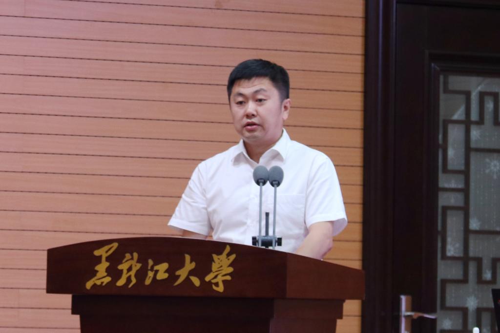 会前,校党委书记王永清代表学校向郝雨凡校友颁发黑龙江大学“客座教授”聘书。